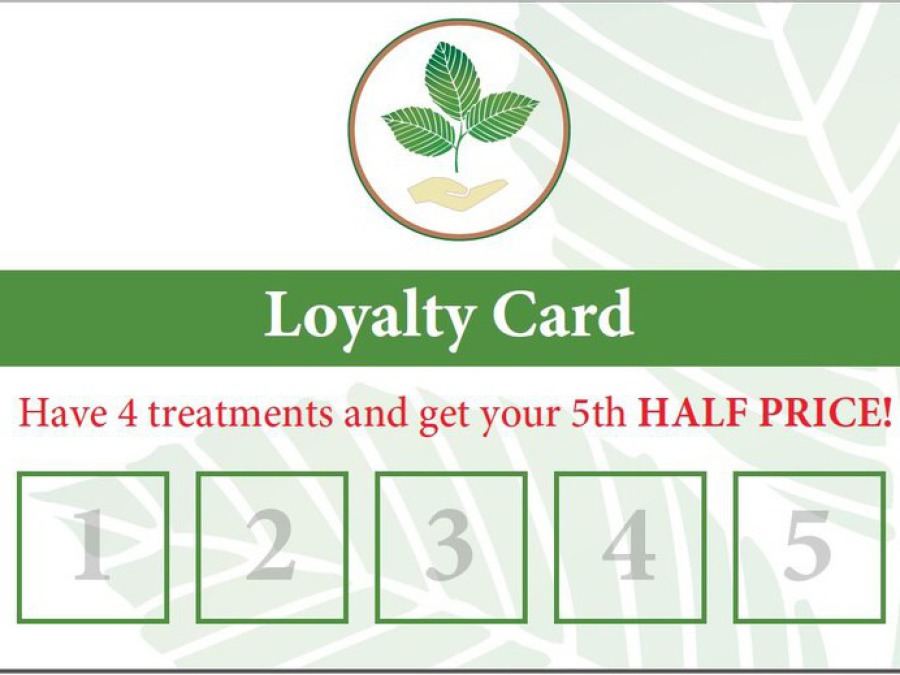 Loyalty Cards for all: 4 full price treatments for 5th half price